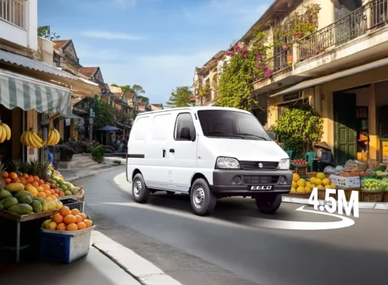 EECO – linh hoạt để xoay trở, bền bỉ để đi đường dài. Với bán kính quay vòng 4,5m và thiết kế tiêu chuẩn Nhật Bản, EECO được kiểm chứng qua hơn 15 năm với 1,2 triệu xe bán ra toàn cầu. Một nền tảng vận chuyển đáng tin cậy cho những hành trình làm việc không ngừng nghỉ.